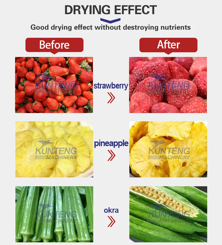 KUNTENG company was founded in 1999. We have been engaged in manufacturing all kinds of fruit and vegetable Air drying machine,freeze dryer,freeze drying machine,lyophilizer, Mesh belt drying machine,and related products for many years.We got more patented technologies and honor. Our machine has passed ISO9001:2000CCC,CE certification, We provide customers with a one-stop service of design solutions, complete equipment, on-site installation,and after-sales support. Welcome to cooperation.