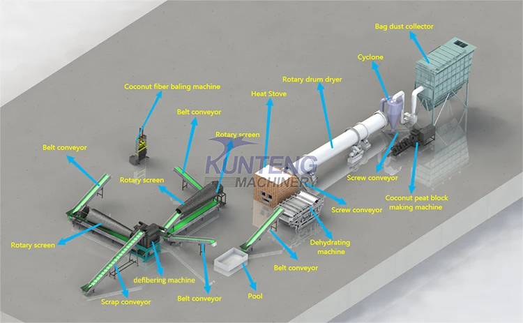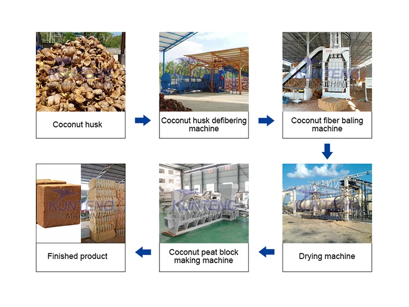 China efficient and stable coconut husk processing line fiber extraction coco peat-making machine