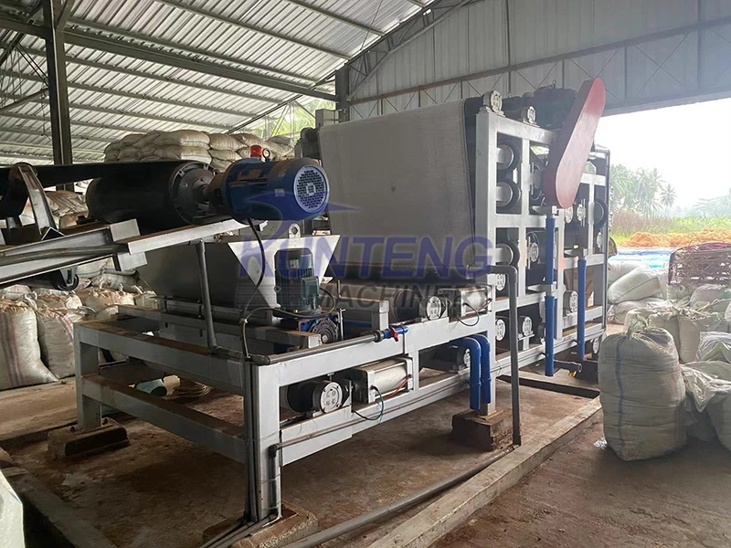 The dehydrating machine system supporting process is unique, stable, and reliable. The triple equalization structure can make the materials spread more evenly on the top of the filter belt, and the filter cake pressed out has a better effect, bigger output, and lower moisture.