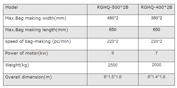3. The entire shopping bag making machine is controlled by a microcomputer, with a stepper motor for feeding (optional servo motor control system), and accurate sealing and cutting dimensions.
