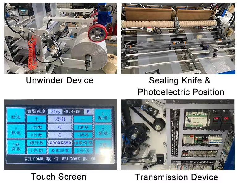 1. A novel sealing and cutting device is designed in this mini plastic bag making machine, with convenient pressure adjustment of the sealing and cutting knife. The overall rotation reaches 180 degrees, making it easy to clean and replace the adhesive tape.