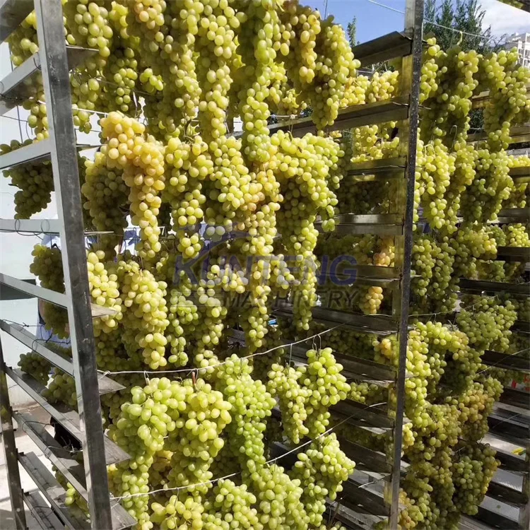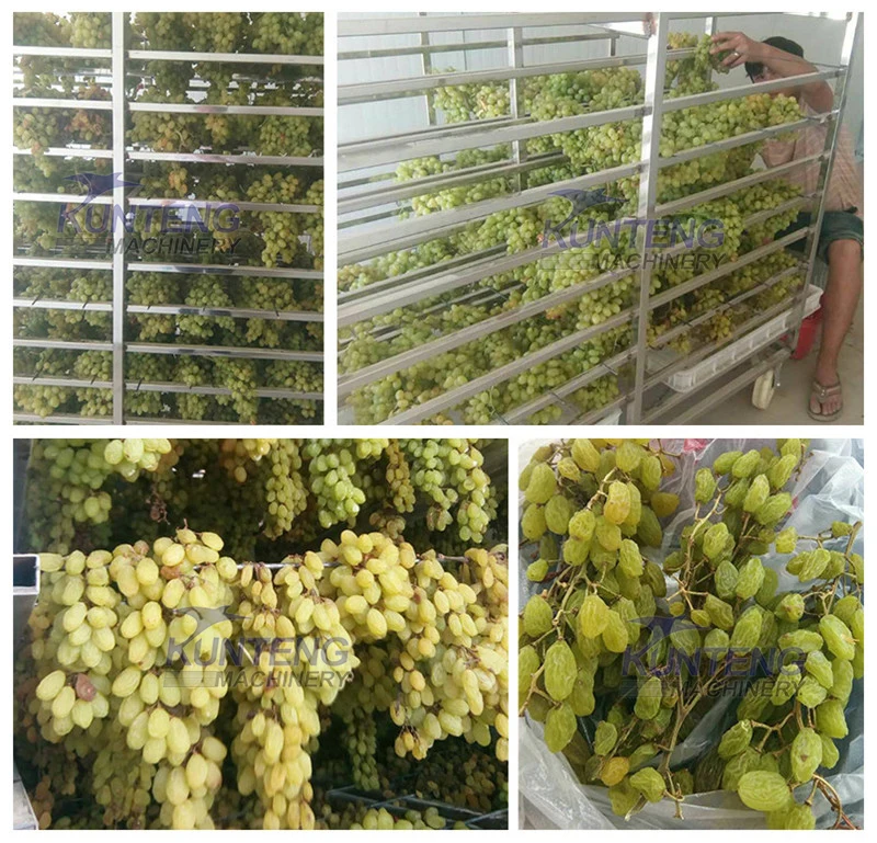 Our Fruit and vegetable drying processing machine, grape raisin drying machine, mango dryer machine, perform static drying by heating the air temperature in the house to drying the materials,Greatly retain the nutritional value of the original materials.
