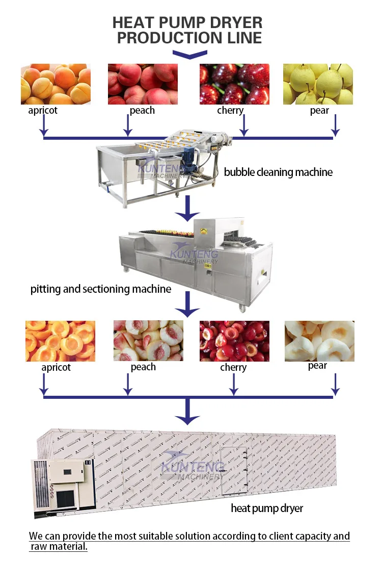 KUNTENG company was founded in 1999. We have been engaged in manufacturing all kinds of fruit and vegetable Air drying machine,Fruit and vegetable drying processing machine, grape raisin drying machine, mango dryer machine,Mesh belt drying machine,Heat pump drying oven for many years.We got more patented technologies and honor. Our machine has passed ISO9001:2000CCC,CE certification, We provide customers with a one-stop service of design solutions, complete equipment, on-site installation,and after-sales support. Welcome to cooperation.