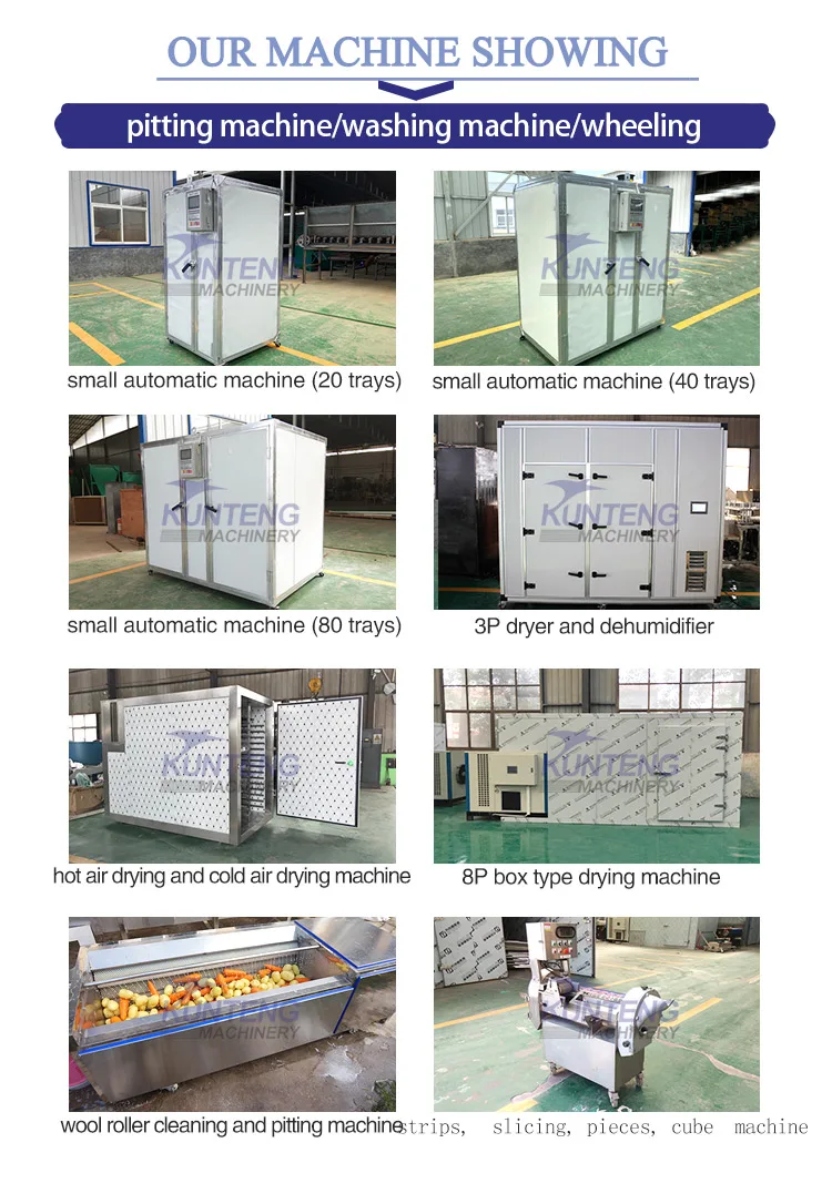 According to customer's needs, we can also design a complete drying production line. Such as fruit and vegetable slicer, drying and cold drying machine, sieving machine, vegetable cutting machine, cutting machine, bubble washing machine, slicing machine, dicing machine, de-core machine, shredding machine, rinsing machine.