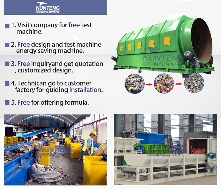 Kunteng Machinery is a professional manufacturer and exporter of solid waste recycling equipment in China.We have complete R&D, production, sales, and service departments which can provide customer full service in waste recycle field and after sales service.