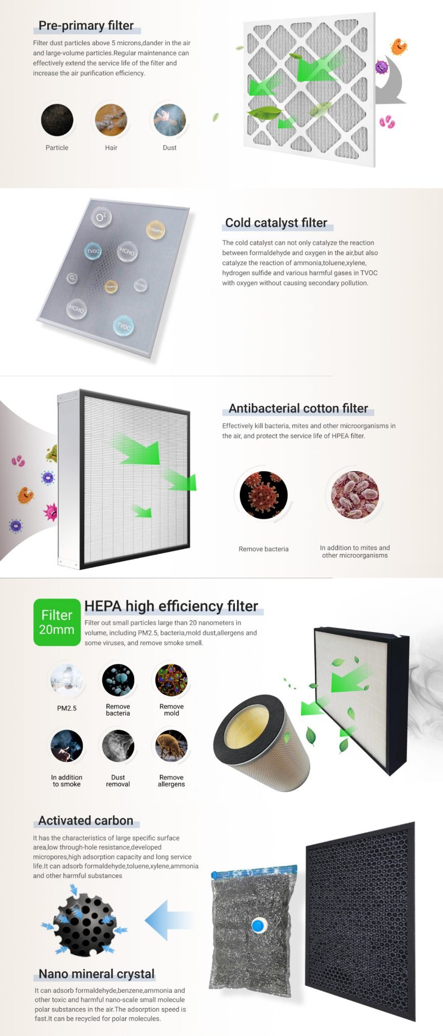 Whether it is indoor air purification equipment,indoor air sterilization equipment,or air filtration filter,Deno is always providing you the best solutions with high-quality and low cost in very short time.Our equipments with high level filters which can reach up to 99.99% removal efficiency, have passed many certificates,such as UL,CE,FCC,ect.