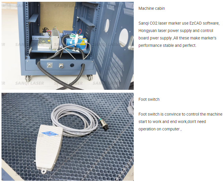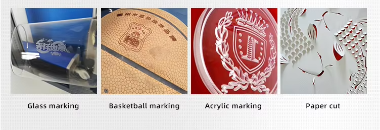Applicable materials and industry applications CO2 laser marking machine optical machine can engrave a variety of non-metallic materials. Used in clothing accessories, pharmaceutical packaging, building ceramics, beverage packaging, fabric cutting, rubber products, shell nameplates, craft gifts, electronic components, leather fabrics, bamboo products, label paper and other industries. Typical application cases, such as laser marking of packaging boxes, code printing of paper and metal detonator shells, etc.