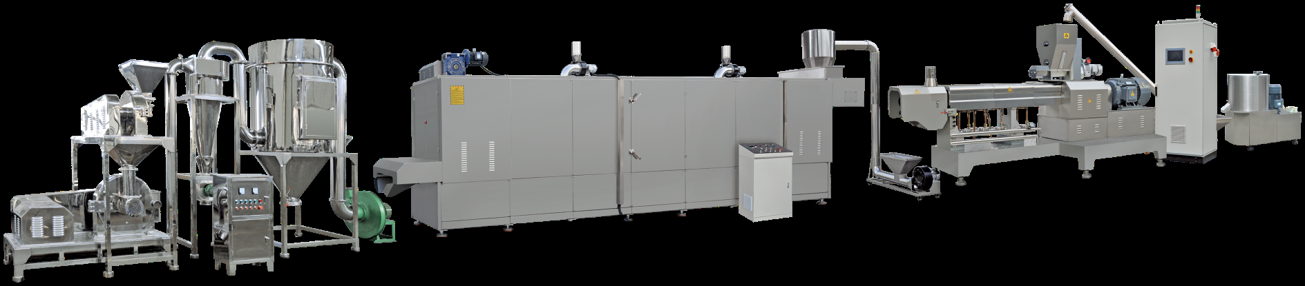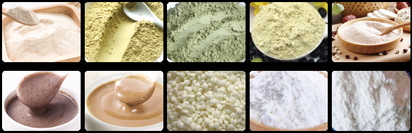 Baby food production line uses rice, corn, beans and all kinds of grains as raw materials. Through extruding, inflating, drying, crushing and mixing, it could produce many kinds of nutrition powder, such as baby rice powder, sesame paste, beans powder and so on. This line could finish all the process automatically from the feeding to the end. It has features of easy operation, without leak of powder dust, sanitation, saving energy and easy to add all kinds of raw materials and nutriment.